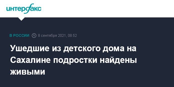 Москва. 8 сентября. INTERFAX.RU - Два подростка, которые самовольно покинули детский дом на Сахалине, найдены живыми и здоровыми, сообщает в среду пресс-служба регионального управления СКР.