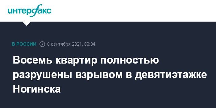 Восемь квартир полностью разрушены взрывом в девятиэтажке Ногинска