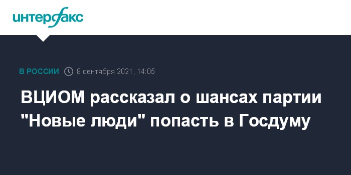 Москва. 8 сентября. INTERFAX.RU - Партия "Новые люди" может преодолеть пятипроцентный барьер на выборах в Госдуму, свидетельствуют данные исследования ВЦИОМ, которые представил в среду генеральный директор социологического центра Валерий Федоров.