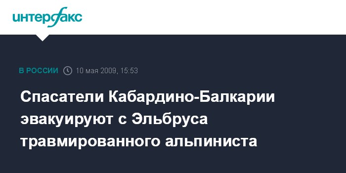Нальчик. 10 мая. INTERFAX.RU - Спасатели обнаружили на Эльбрусе группу альпинистов, один из членов которой сломал обе ноги. Начинается операция по эвакуации пострадавшего.
