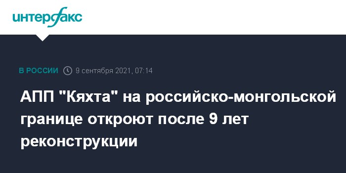 Москва. 9 сентября. INTERFAX.RU - Минтранс России утвердил приказ об открытии автомобильного пункта пропуска "Кяхта" в Бурятии между Россией и Монголией, реконструкция которого велась девять лет, сообщили "Интерфаксу" в пресс-службе Минтранса республики.