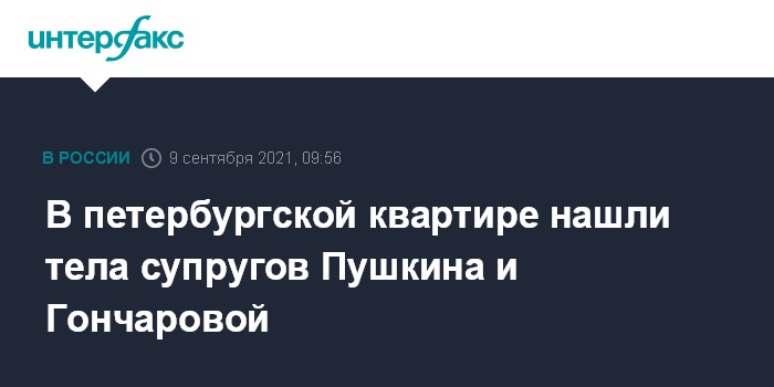 В петербургской квартире нашли тела супругов Пушкина и Гончаровой