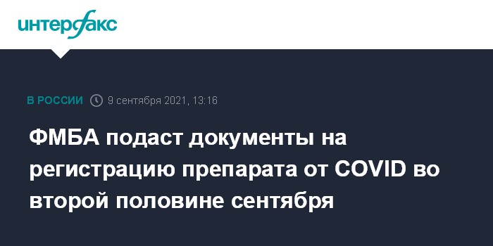 ФМБА подаст документы на регистрацию препарата от COVID во второй половине сентября