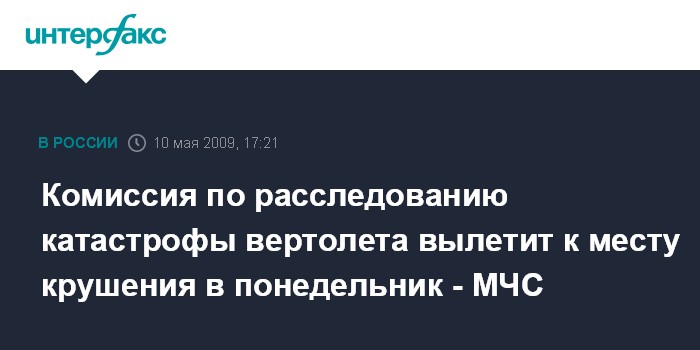 Новосибирск. 10 мая. INTERFAX.RU - Комиссия по расследованию обстоятельств авиакатастрофы вертолета, в которой погиб иркутский губернатор Игорь Есиповский, вылетит к месту происшествия в понедельник, сообщили агентству "Интерфакс-Сибирь" в сибирском региональном центре МЧС РФ.