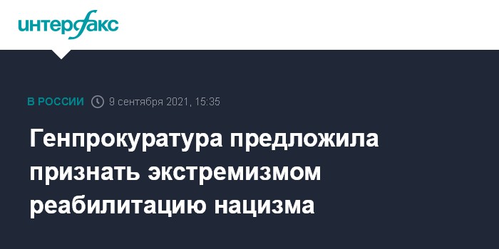 Москва. 9 сентября. INTERFAX.RU - Генпрокуратура России предложила законодательно признать экстремизмом отрицание результатов Нюрнбергского трибунала и реабилитацию нацизма.