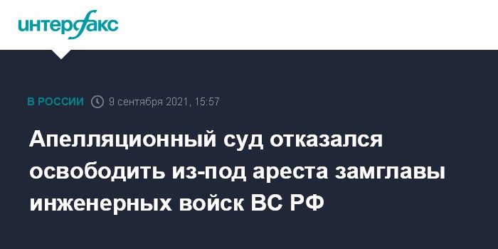 Апелляционный суд отказался освободить из-под ареста замглавы инженерных войск ВС РФ