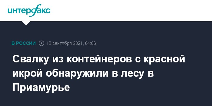 Москва. 10 сентября. INTERFAX.RU - Более сотни контейнеров с красной икрой обнаружены в лесу в пригороде Благовещенска Амурской области, сообщает региональная прокуратура.