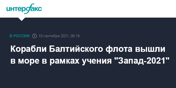 Москва. 10 сентября. INTERFAX.RU - В районы Балтийского моря для выполнения практических задач совместного стратегического учения "Запад-2021" вышли 15 кораблей и катеров, а также суда обеспечения Балтийского флота, сообщило Минобороны РФ.
