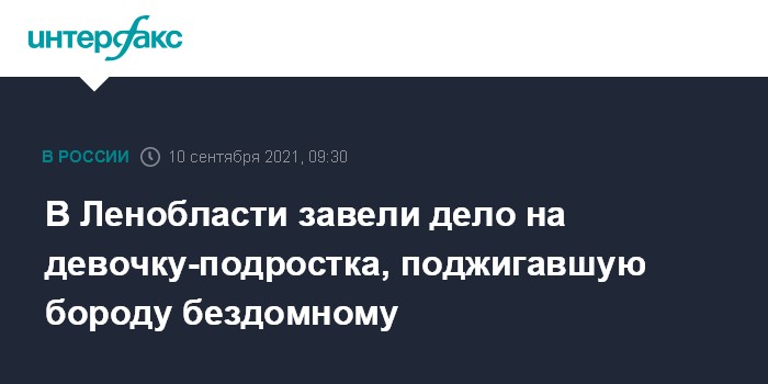 В Ленобласти завели дело на девочку-подростка, поджигавшую бороду бездомному