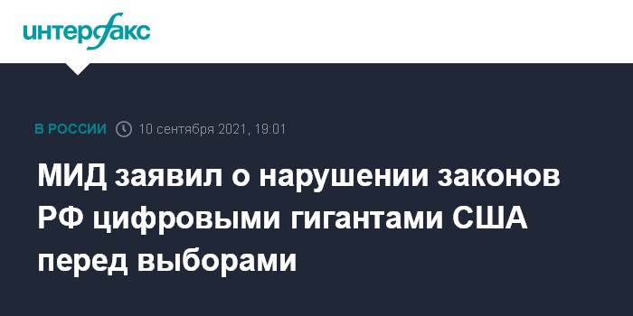 МИД заявил о нарушении законов РФ цифровыми гигантами США перед выборами