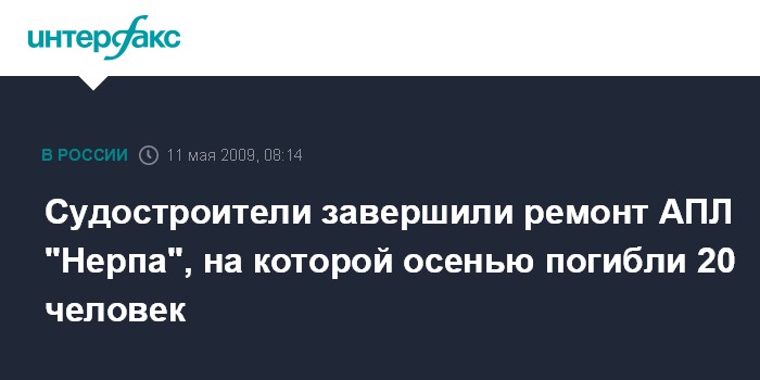 Комсомольск-на-Амуре. 11 мая. ИНТЕРФАКС-ДАЛЬНИЙ ВОСТОК - Ремонтно- восстановительные работы на атомной подводной лодке (АПЛ) "Нерпа", на которой в результате аварии в ноябре прошлого года погибли 20 человек, полностью завершены.