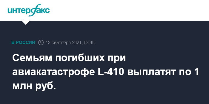 Семьям погибших при авиакатастрофе L-410 выплатят по 1 млн руб.