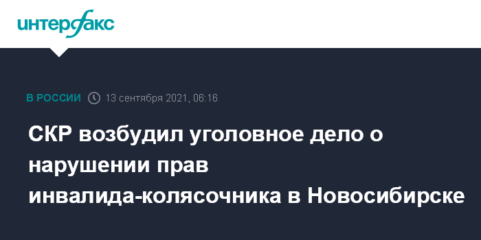 СКР возбудил уголовное дело о нарушении прав инвалида-колясочника в Новосибирске