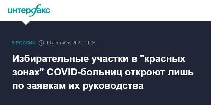 "Они (временные избирательные участки в "красных зонах") открываются только по предложению администрации данных больниц", - сказал Булаев "Интерфаксу" в понедельник.
