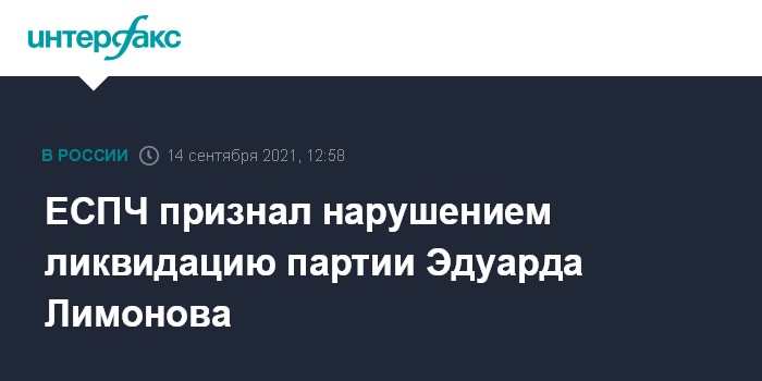Москва. 14 сентября. INTERFAX.RU - Европейский суд по правам человека (ЕСПЧ) посчитал, что российские власти нарушили Европейскую конвенцию по правам человека, ликвидировав Национал-большевистскую партию (НБП, признана в РФ экстремистской) писателя и политика Эдуарда Лимонова (Савенко).