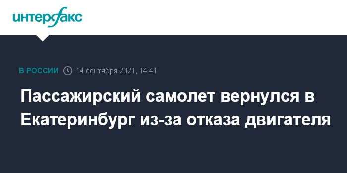 Пассажирский самолет вернулся в Екатеринбург из-за отказа двигателя