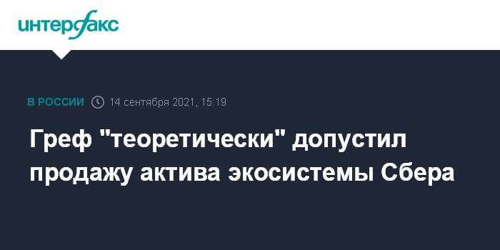 Москва. 14 сентября. INTERFAX.RU - Глава Сбербанка Герман Греф "теоретически" допустил продажу актива экосистемы банка, если его развитие не оправдывает ожиданий.