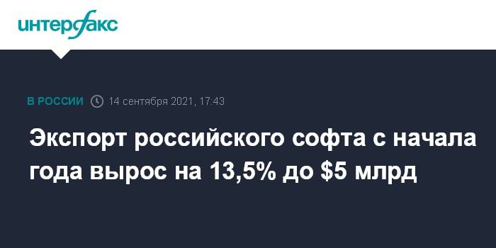 Экспорт российского софта с начала года вырос на 13,5% до $5 млрд