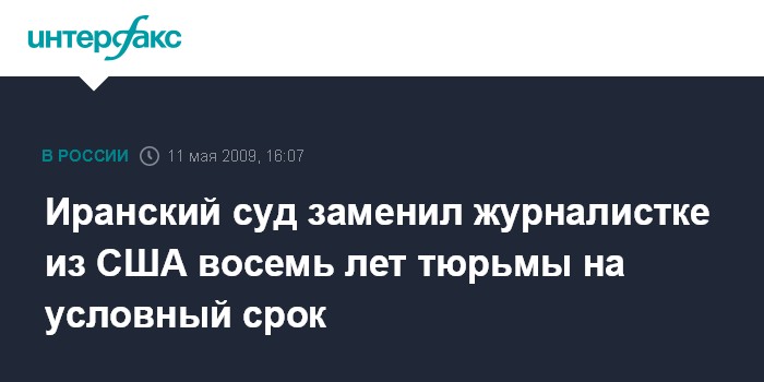 Москва. 11 мая. INTERFAX.RU - Апелляционный суд Ирана сократил приговор американской журналистке Роксане Сабери, сообщает британская телерадиовещательная корпорация Би-Би-Си.