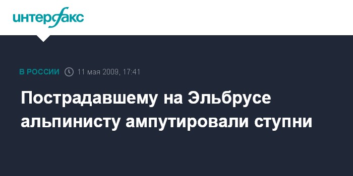 Нальчик. 11 мая. INTERFAX.RU - Пострадавшему 9 мая на Эльбрусе альпинисту из Санкт-Петербурга ампутированы по голень обе нижние конечности, сообщил в понедельник агентству "Интерфакс-Юг" руководитель пресс-службы Главного управления МЧС РФ по КБР Кантемир Давыдов.