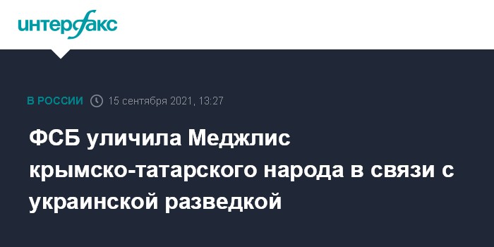 Москва. 15 сентября. INTERFAX.RU - ФСБ заявила о выявлении связи признанного экстремистским и запрещенного в РФ "Меджлиса крымско-татарского народа" со спецслужбами Украины.