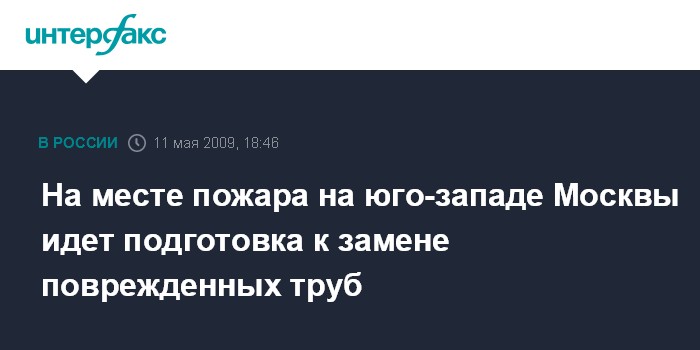 Москва. 11 мая. INTERFAX.RU - Полным ходом идут ремонтно-восстановительные работы на месте пожара отвода распределительного газопровода на юго-западе Москвы.