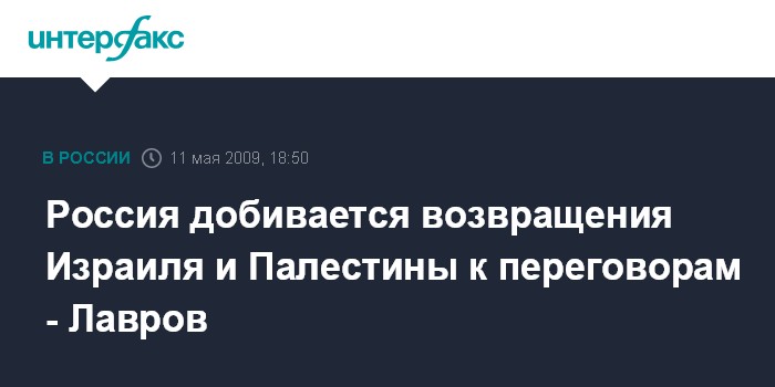 Нью-Йорк. 11 мая. INTERFAX.RU - Россия призывает Израиль и Палестину как можно скорее вернуться к переговорам.