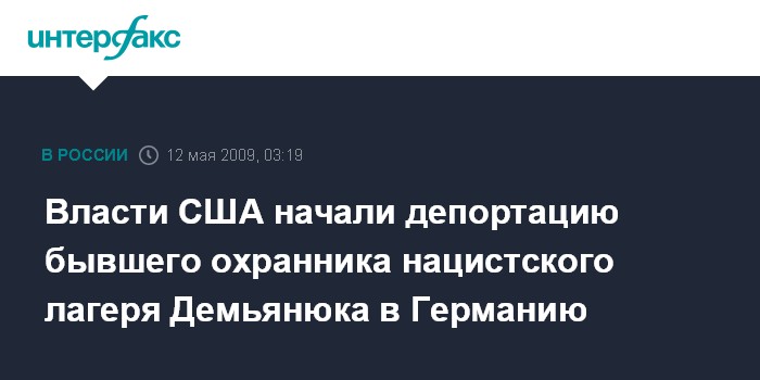 Как сообщалось ранее, федеральный апелляционный суд США санкционировал депортацию в Германию И.Демьянюка, однако в апреле этого года решение о его депортации было перенесено из-за физической недееспособности 89-летнего старика.