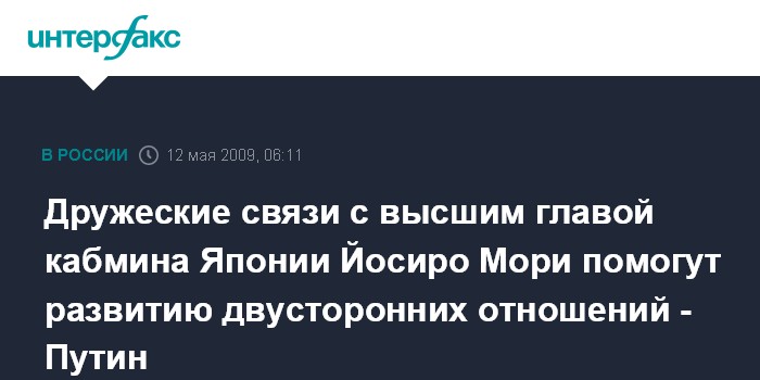 Дружеские связи с высшим главой кабмина Японии Йосиро Мори помогут развитию двусторонних отношений - Путин