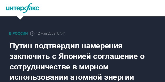 Путин подтвердил намерения заключить с Японией соглашение о сотрудничестве в мирном использовании атомной энергии