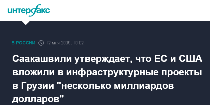 Саакашвили утверждает, что ЕС и США вложили в инфраструктурные проекты в Грузии "несколько миллиардов долларов"