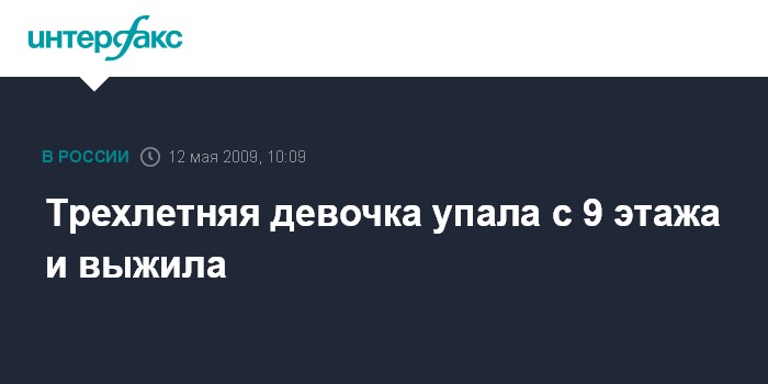 Москва. 12 мая. INTERFAX.RU - В Перми трехлетняя девочка получила тяжелые травмы, выпав из окна квартиры, расположенной на 9 этаже.