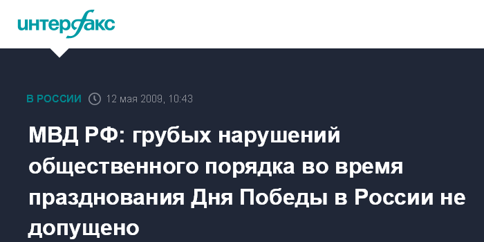 МВД РФ: грубых нарушений общественного порядка во время празднования Дня Победы в России не допущено
