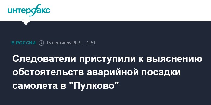 Москва. 15 сентября. INTERFAX.RU - Следователи приступили к выяснению обстоятельств аварийной посадки самолета A319, прилетевшем рейсом из Турции в санкт-петербургский аэропорт Пулково, сообщила представитель Северо-Западного управления следственного комитета (СК) Елена Марковская.