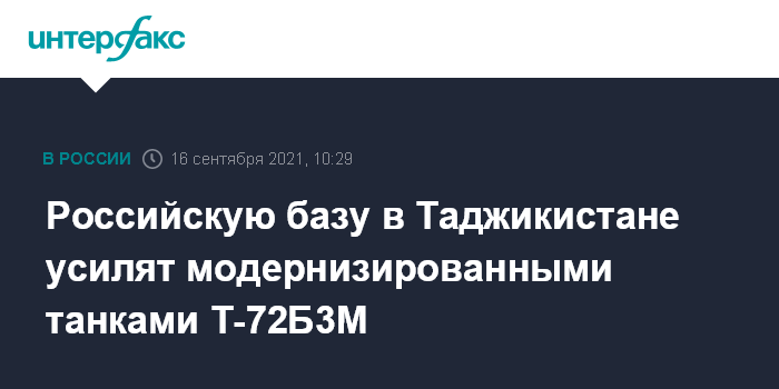 10 сентября начальник автобронетанковой службы ЦВО Ханиф Беглов сообщил, что российская военная база в Таджикистане до конца года получит 30 современных танков. Они заменят боевые машины более ранних модификаций танкового батальона базы.