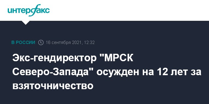 Экс-гендиректор "МРСК Северо-Запада" осужден на 12 лет за взяточничество