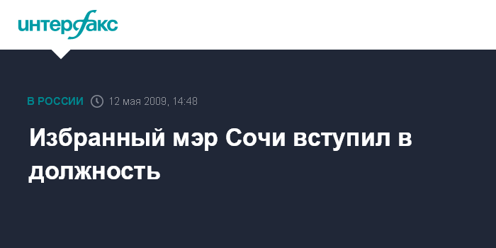 Москва. 12 мая. INTERFAX.RU - Избранный глава города Сочи Анатолий Пахомов на церемонии во вторник произнес присягу на верность служения жителям города Сочи.