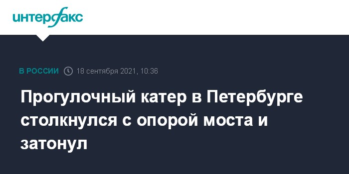 Москва. 18 сентября. INTERFAX.RU - Северо-Западная транспортная прокуратура проверяет обстоятельства столкновения катера с опорой моста в Петербурге, сообщает пресс-служба ведомства в субботу.