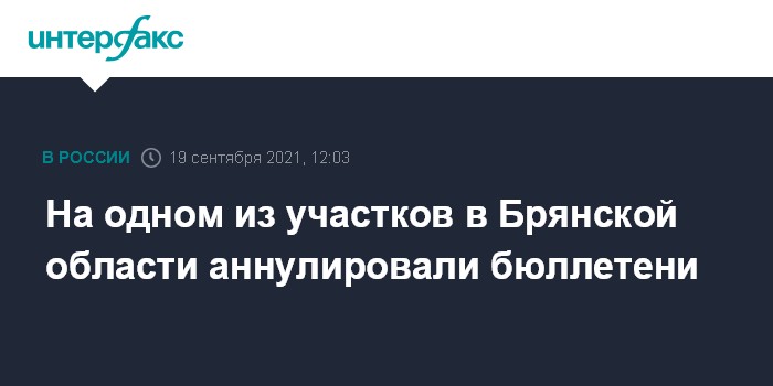 Москва. 19 сентября. INTERFAX.RU - В Новозыбкове Брянской области на избирательном участке номер 699 аннулировали бюллетени, сообщил в воскресенье пресс-центр регионального общественного штаба по контролю и наблюдению за выборами.