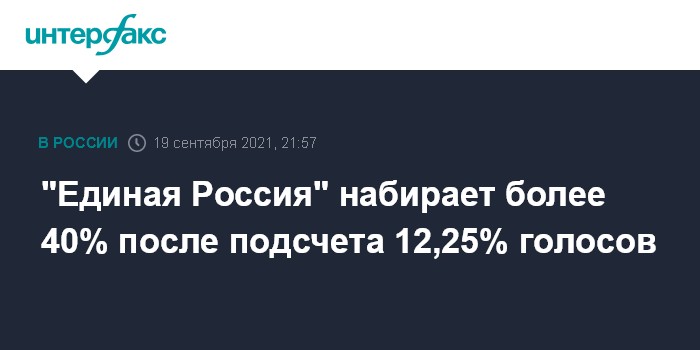 "Единая Россия" набирает более 40% после подсчета 12,25% голосов