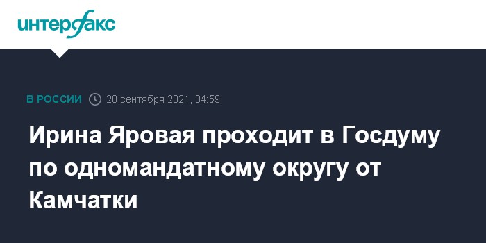 Ирина Яровая проходит в Госдуму по одномандатному округу от Камчатки