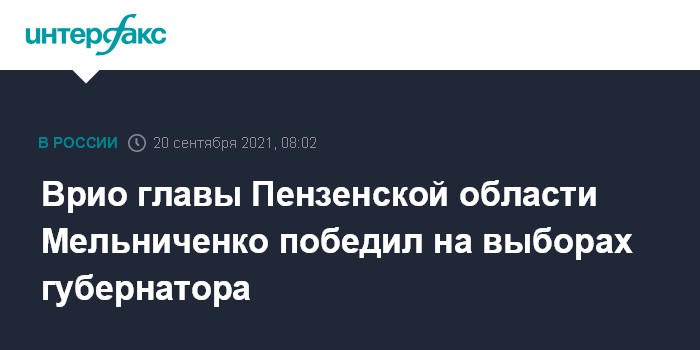 Врио главы Пензенской области Мельниченко победил на выборах губернатора