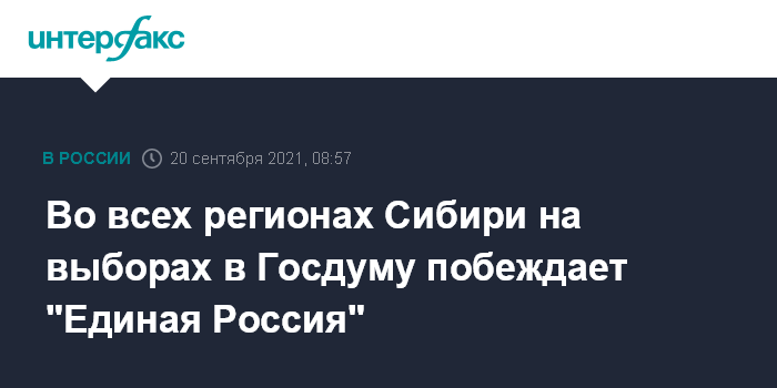 Во всех регионах Сибири на выборах в Госдуму побеждает "Единая Россия"