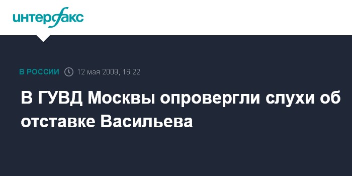 Москва. 12 мая. INTERFAX.RU - В управлении информации и общественных связей ГУВД Москвы опровергли появившуюся во вторник в СМИ информацию о том, что заместитель начальника ГУВД Виктор Васильев написал рапорт об отставке.