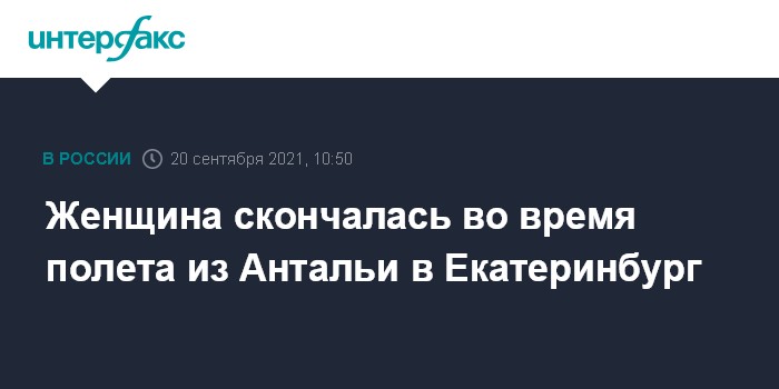 Женщина скончалась во время полета из Антальи в Екатеринбург