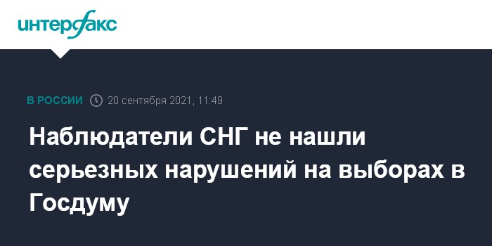 Москва. 20 сентября. INTERFAX.RU - Серьезных нарушений, которые могли повлиять на итоги голосования на выборах в Госдуму, не зафиксировано, выборы прошли в соответствии с законодательством РФ, сообщил глава миссии наблюдателей от СНГ, зампред исполкома Содружества Ильхом Нематов.
