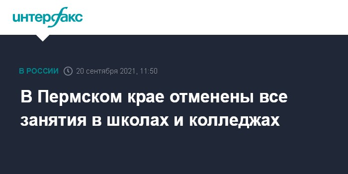 Москва. 20 сентября. INTERFAX.RU - Правительство Пермского края отменило 20 сентября все занятия в школах, техникумах и колледжах в связи со стрельбой на территории Пермского государственного национального исследовательского университета.