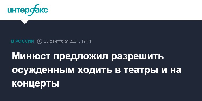 Москва. 20 сентября. INTERFAX.RU - Минюст сообщил, что подготовил поправки, которые разрешат некоторым категориям осужденных в порядке поощрения посещать театры, концерты, спортивные состязания в сопровождении сотрудников ФСИН. Речь идет об осужденных, которые отбывают срок в облегченных условиях в колонии общего или строгого режима.