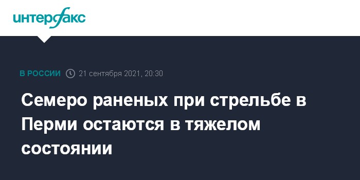 Москва. 21 сентября. INTERFAX.RU - Семь пострадавших в результате вооруженного нападения на Пермский государственный университет нормально перенесли эвакуацию в Москву, но остаются в стабильно тяжелом состоянии, сообщил во вторник вечером помощник министра здравоохранения РФ Алексей Кузнецов.