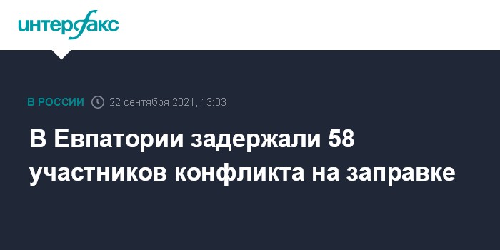 Москва. 22 сентября. INTERFAX.RU - В Евпатории полицейские задержали 58 предполагаемых участников ночного конфликта на автозаправке, у некоторых задержанных нашли травматическое оружие, сообщили в крымском управлении МВД.